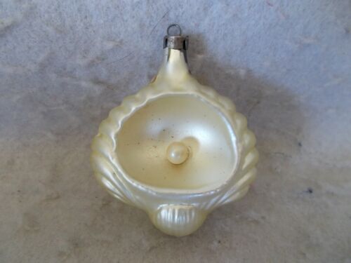 VINTAGE FIGURAL GLASS SHELL WITH PEARL ORNAMENT
