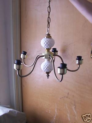 HOBNAIL MILK GLASS CHANDELIER CEILING LIGHT FIXURE