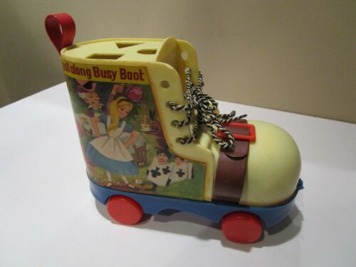 Title (ebay affiliate link): Vintage PLAY & LEARN Pull Along Busy Boot Pull Toy NO. 1005 HONG KONG