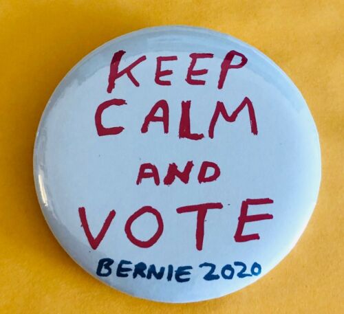 Title (ebay affiliate link): 2 1/4" Keep Calm and Vote Bernie (Sanders) 2020 Campaign Pin from New Hampshire