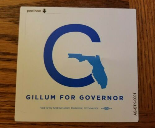 Title (ebay affiliate link): ANDREW GILLUM for Florida Governor 2018 Official Campaign Bumper Sticker square