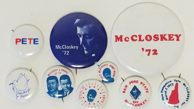 Title (ebay affiliate link): 9 Vintage 1972 Pete Mccloskey Presidential Campaign Pinback Buttons