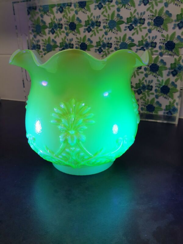 AN ANTIQUE VASELINE URANIUM GLASS OIL LAMP SHADE Victorian