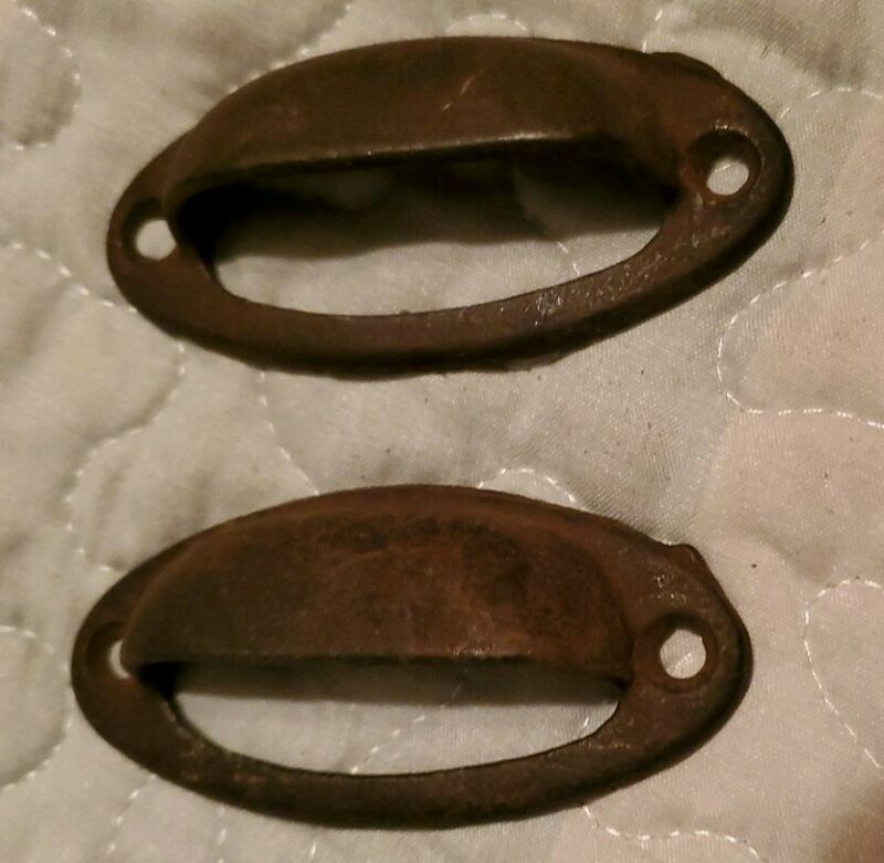 Title (ebay affiliate link): PAIR OF ANTIQUE CAST IRON FURNITURE BIN PULLS DRAWER PULLS SMALL TRUNK HANDLES