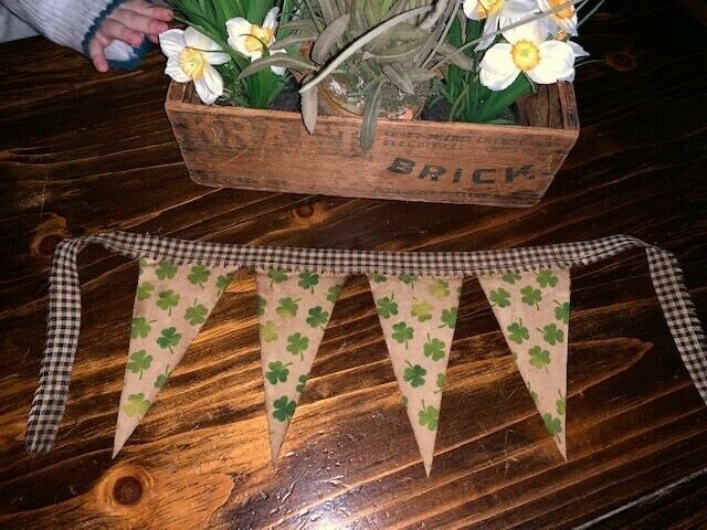 Title (ebay affiliate link): Primitive Spring Easter St. Patricks Day Pennant Banner Flag Mat Shamrock Green
