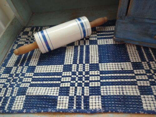 Title (ebay affiliate link): Primitive Early Antique Coverlet Runner Table Old Blue & Cream AAFA