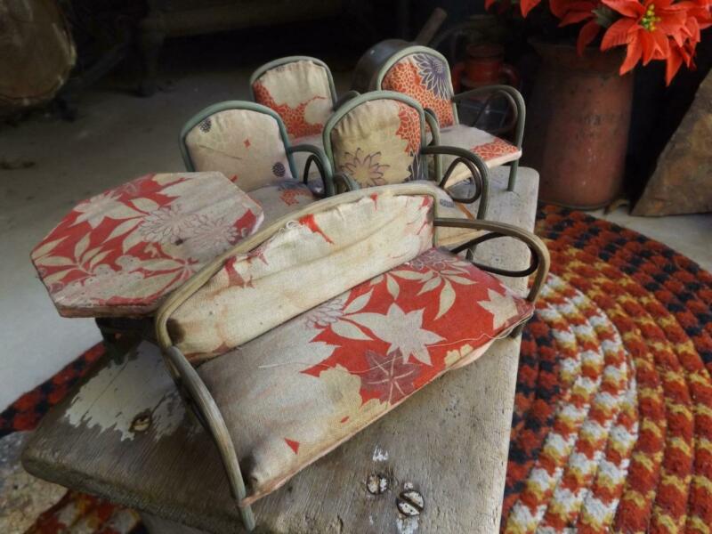 Primitive Vintage Deco Era Wicker Dollhouse Furniture Original Upholstery WOW!