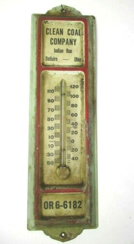 Vintage Advertising 13" Thermometer Clean Coal Company Indian Run Bellaire Ohio