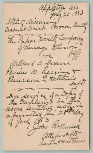 Title (ebay affiliate link): Appleton WI Nice PM~Paper Novelty Chicago vs Ullard Doane~Botteusek~1883 Postal