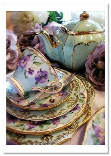 Title (ebay affiliate link): Tea Cup set-Tea Party-Nice Vintage Tea Ware Pumpkin Flowers #13 Modern Postcard