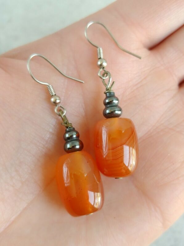 Title (ebay affiliate link): Old Antique Genuine CARNELIAN Stone Hematite CZECH GLASS Bead 2" Dangle Earrings