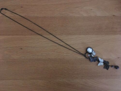 Accessorize antique coloured fashion necklace, butterfly & bead pendant 19" drop