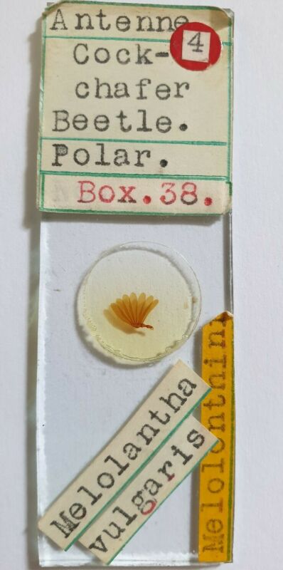 FINE VINTAGE MICROSCOPE SLIDE "ANTENNA COCKCHAFER BEETLE" POLARISCOPE
