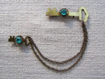 Title (ebay affiliate link): Vintage Turquoise Rhinestone 2 Key & 2 Chain Brooch Pin