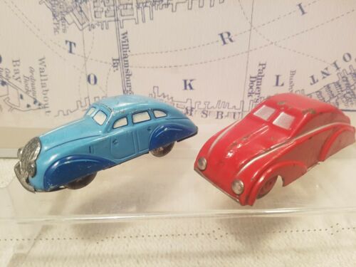 2 x Tin Toy Wind up Red & Blue Car -Germany ?