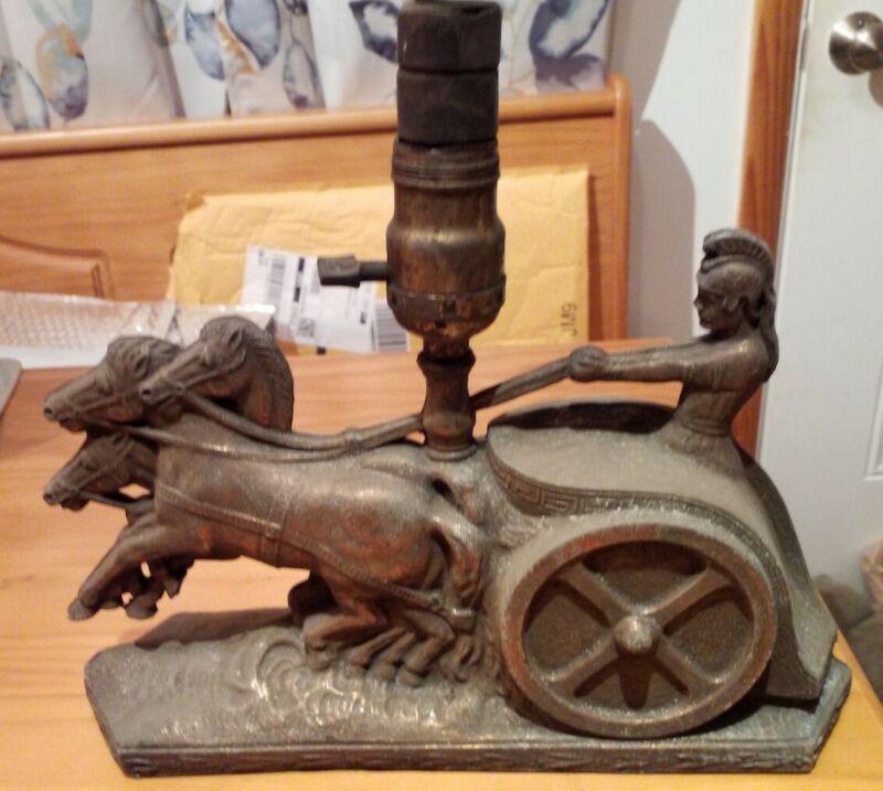 Antique 1920''s 1930''s Greek/Roman Gladiator Horses Chariot Lamp