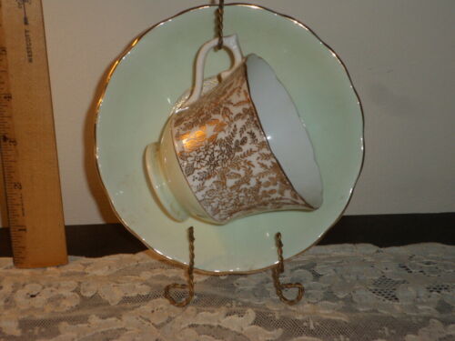 Vintage "Royal Vale" Teacup & Saucer - Mint Green w Gold - England