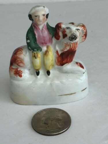 Title (ebay affiliate link): Antique Miniature Staffordshire Pottery BOY ON SPANIEL DOG Figurine Fairing 2.5"