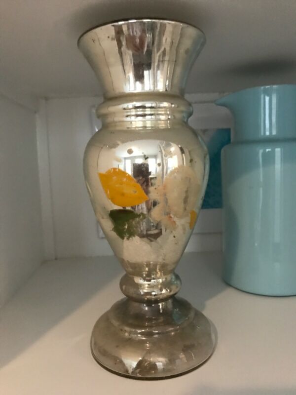 Title (ebay affiliate link): Vintage/Antique Mercury Glass Vase Hand Painted With Flower Decoration