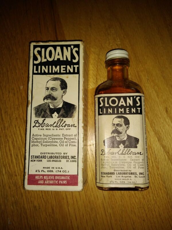 Title (ebay affiliate link): ANTIQUE SLOAN''S LINIMENT QUACK MEDICINE WITH BOX GREAT GRAPHICS COOL LOOK