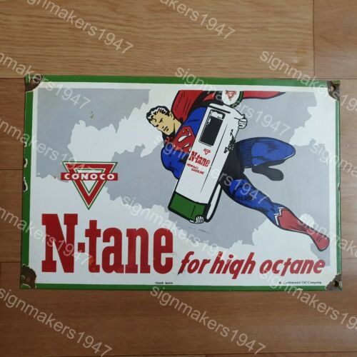 N-TANE SUPERMAN PORCELAIN ENAMEL SIGN 12 X 8 INCHES