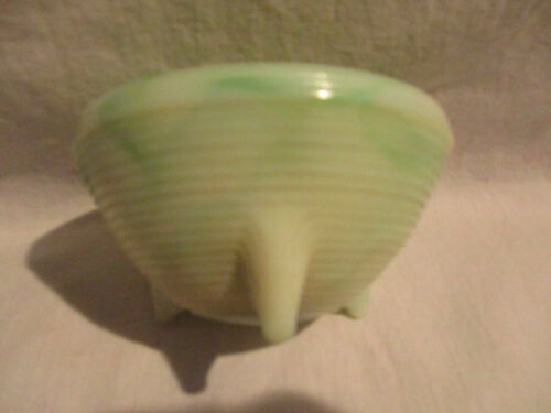 Vintage Akro Agate FOOTED BOWL green/white/blue Glass Swirled lined candy dish