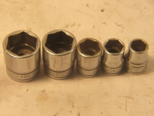 5 PCS LOT SAE Snap-on 3/8" Drive Sockets