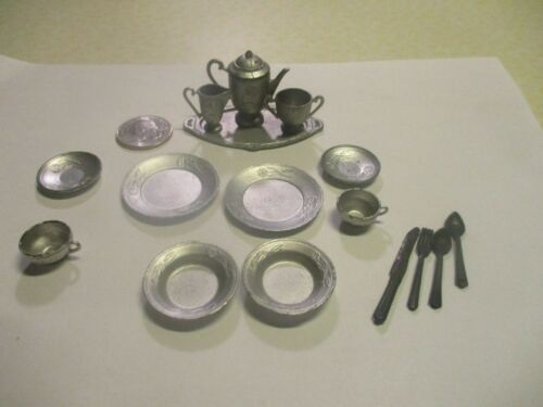 Title (ebay affiliate link): Antique Metal Tea Set Doll House Miniature 2 place setting with matching tea set