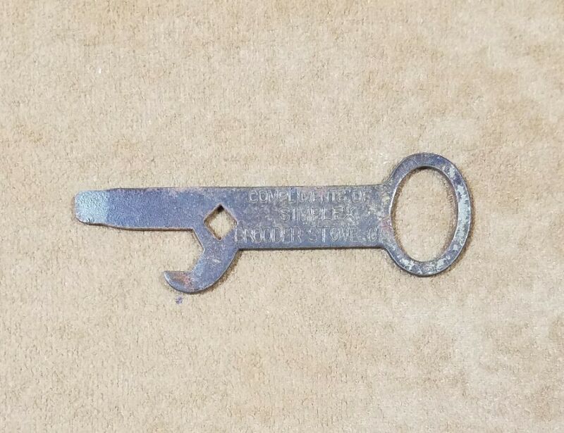 Title (ebay affiliate link): Antique Bottle Opener Keychain - Simplex Brooder Stovew Co