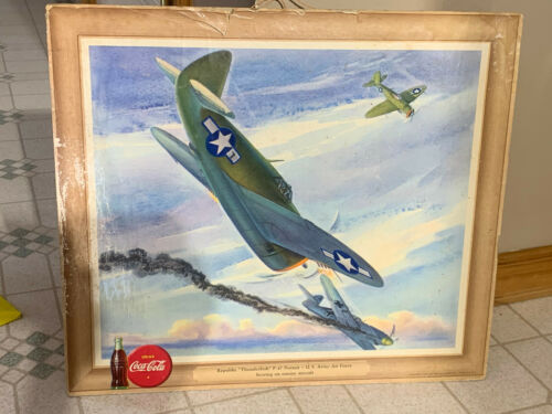 Title (ebay affiliate link): VINTAGE COCA COLA SIGN 1943 FIGHTING PLANE REPUBLIC THUNDERBOLT P47 PURSUIT SIGN