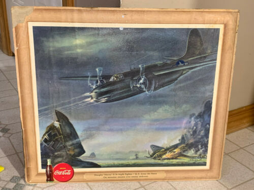 VINTAGE COCA COLA SIGN 1943 FIGHTING PLANES DOUGLAS HAVOC P70 NIGHT FIGHTER SIGN
