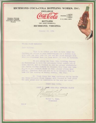 Title (ebay affiliate link): RICHMOND COCA-COLA BOTTLING WORKS, INC. DATED JAN 12, 1934 HAND HOLDING BOTTLE