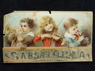 1891 HOOD'S SARSAPARILLA VICTORIAN ERA CALENDAR SIGN