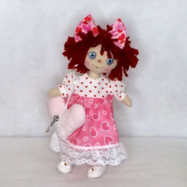 Primitive Raggedy Ann Doll "Key To My Heart" With Shoes Shelf Sitter Heart Ornie