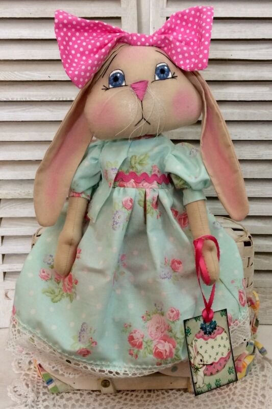 Title (ebay affiliate link): Primitive Bunny Rabbit Doll Girl Spring Easter Shabby Chic Shelf Sitter