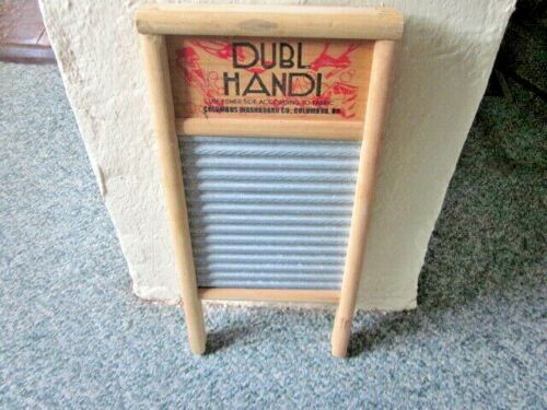 Title (ebay affiliate link): Vintage Travel DUBL HANDI Washboard Co. Columbus, Ohio.. Wood & Metal MINT