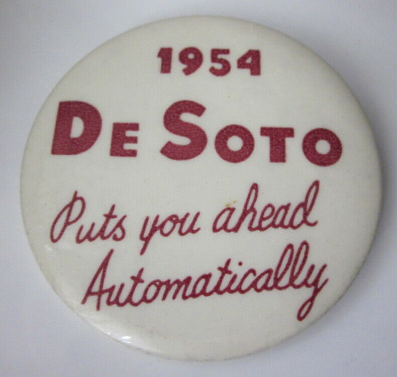 Title (ebay affiliate link): original 1954 DeSoto 2 1/2" button De Soto Puts you ahead Automatically