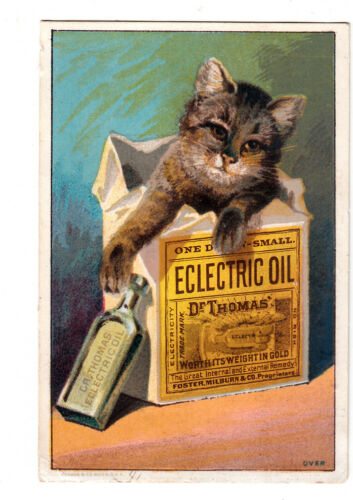 Title (ebay affiliate link): Dr Thomas Eclectric Oil Cat Bottle Dillenback & Rowe Cobleskill NY Card 1880s