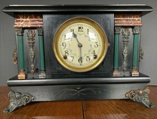 Title (ebay affiliate link): Antique SESSIONS CLOCK 8 Day, Half-Hour Strike, Cathedral Turn Back Mantle Clock