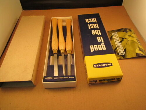 Vintage Marples wood lathe chisels set 3 orig. box papers No. 1005 Sheffield