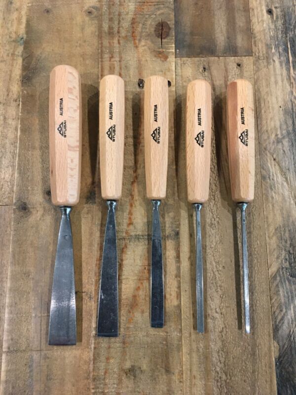 STUBAI Set of 5 Shallow Gouge Carving Chisel AUSTRIA, 1, 3/4, 1/2, 1/4, 1/8 inch