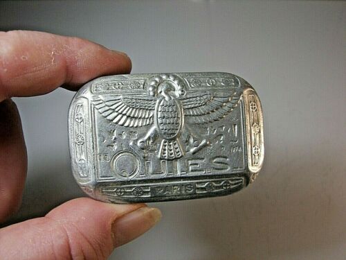 Title (ebay affiliate link): Rare Advertising Tin Ear Plug QUIES Paris 1950 Native American Motives Blechdose