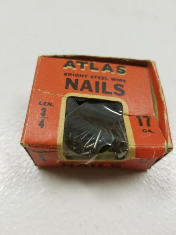Title (ebay affiliate link): Vintage Atlas Tack Corporation Red Box Bright Steel Wire Nails 3/4 17ga