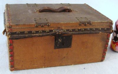 Title (ebay affiliate link): ANTIQUE 1840'S LEATHER & BRASS TACK WOODEN TRUNK