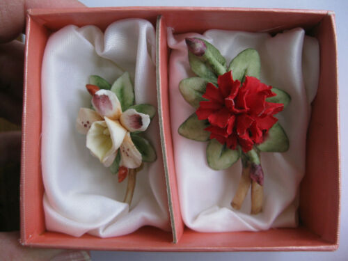 Title (ebay affiliate link): 2 Italian Capodimonte porcelain flower pins in original box