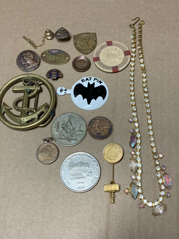 Title (ebay affiliate link): Junk Drawer Lot, Masonic Coca Cola American Legion Batman Marine Coins Casino