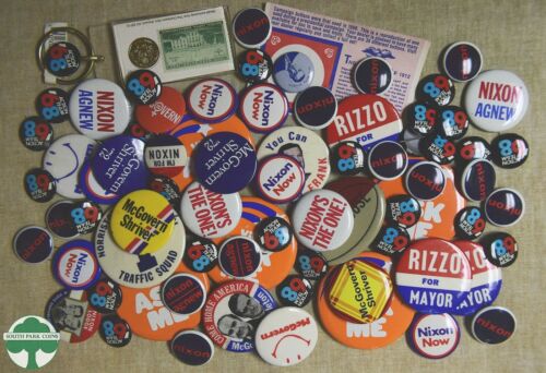 Title (ebay affiliate link): LARGE LOT OF CAMPAIGN BUTTONS & "AMERICAN HERITAGE" STAMP & MEDAL SET KEYCHAIN