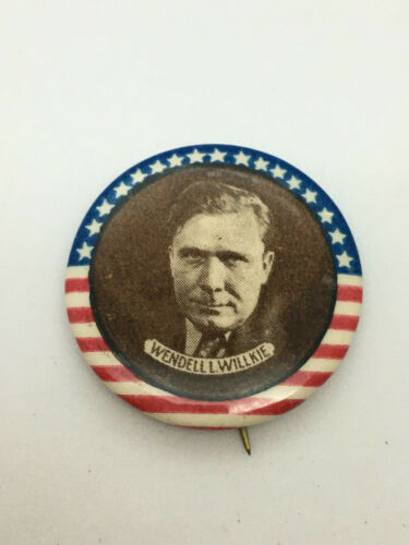 Title (ebay affiliate link): Wendell Willkie 1 5/16" 1940 Celluloid Stars & Stripes Portrait Button