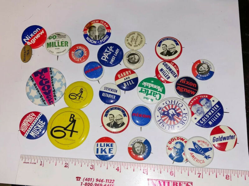 Title (ebay affiliate link): Huge Lot Of 28 Vintage Political Pins Presidential Elections