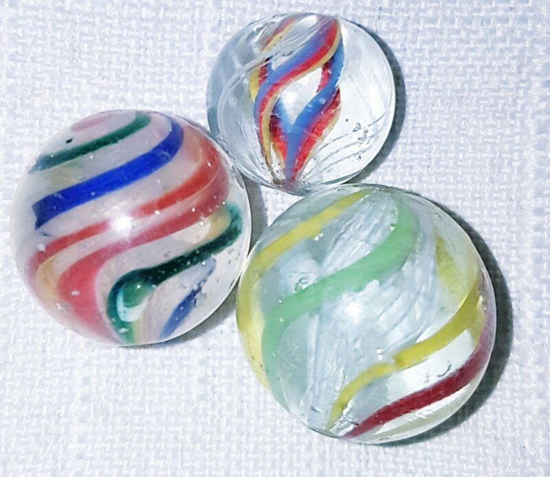 Title (ebay affiliate link): 3 x HANDMADE VINTAGE ANTIQUE MARBLES INCLUDS LARGE SHOOTERS